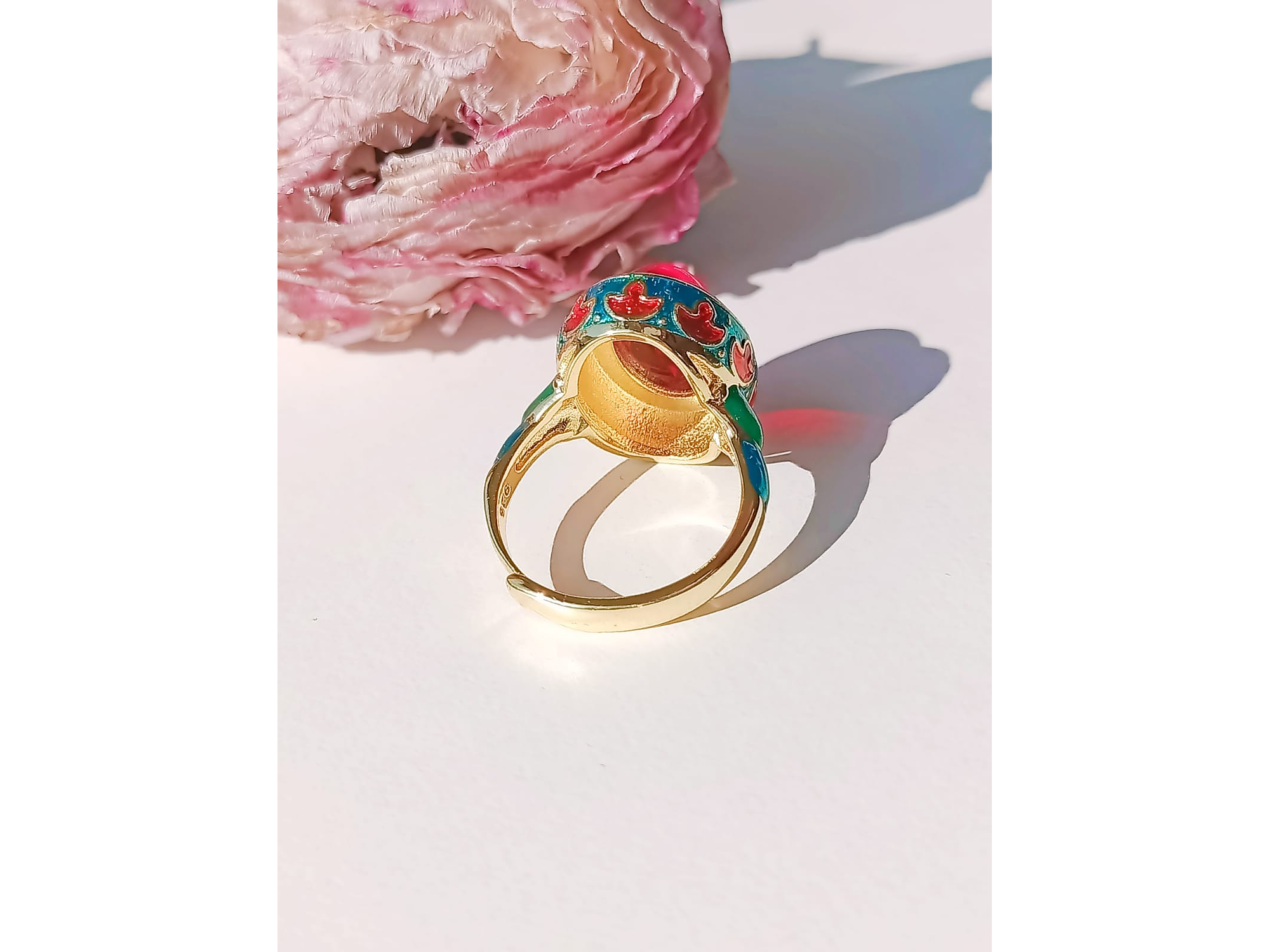 Anillo Ajustable Chapado En Oro 18k Esmaltado Vintage