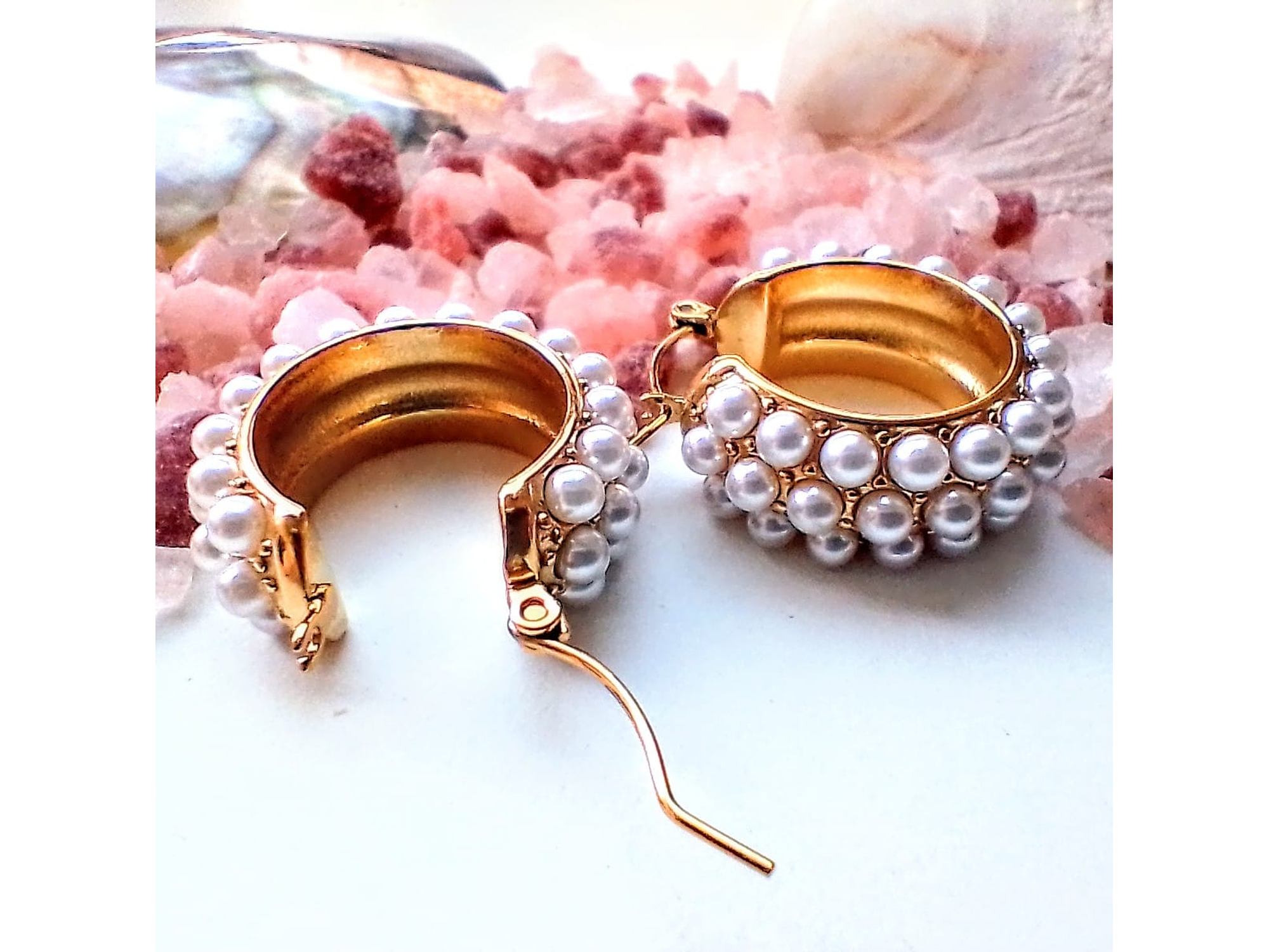 Argollas bote con perlas chapadas en oro 18k