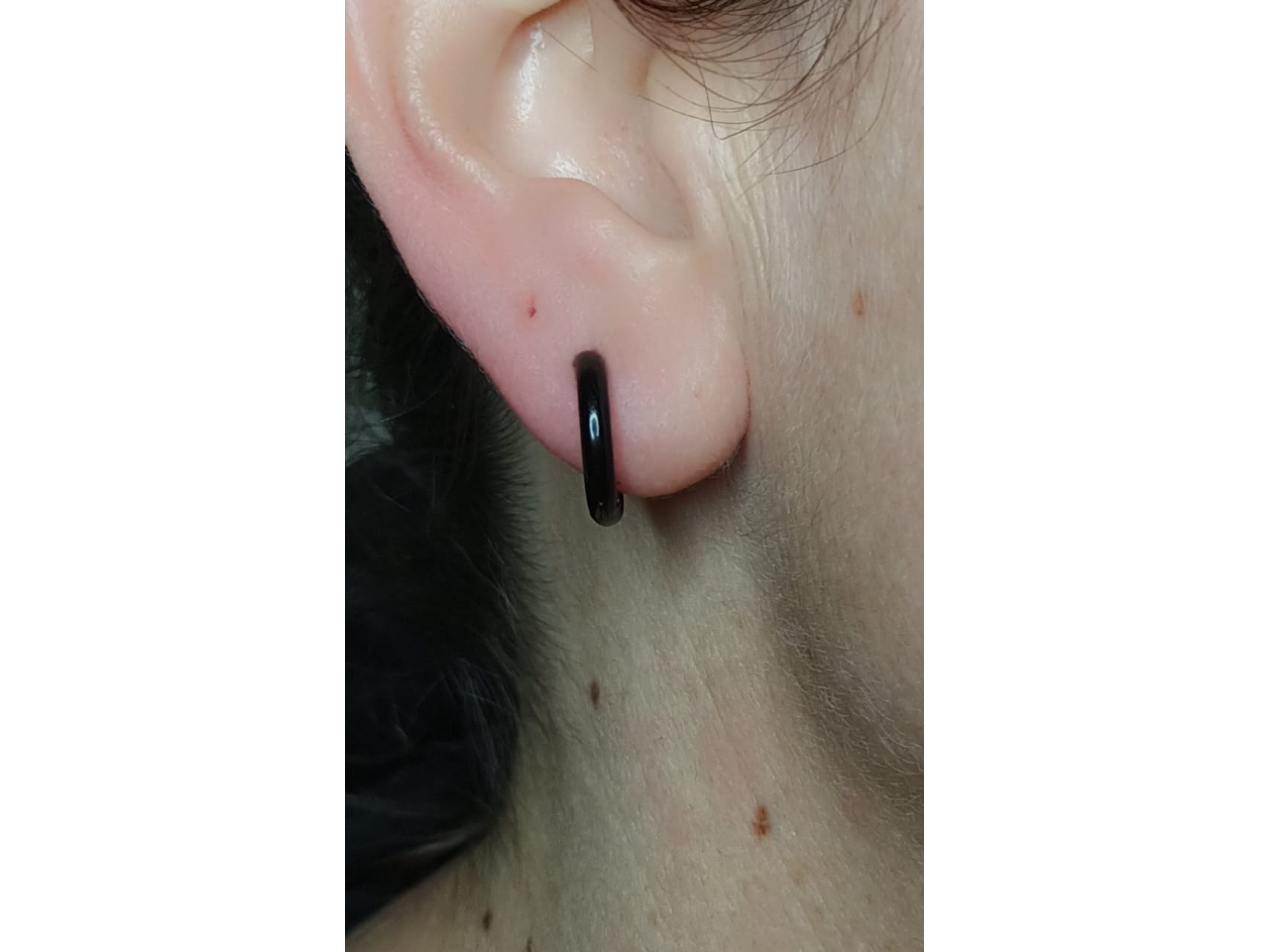 Argollas de tamaño ideal para combinar con otros pendientes, con un diámetro interno de 10mm. Fabricado con un resistente esmaltado negro.