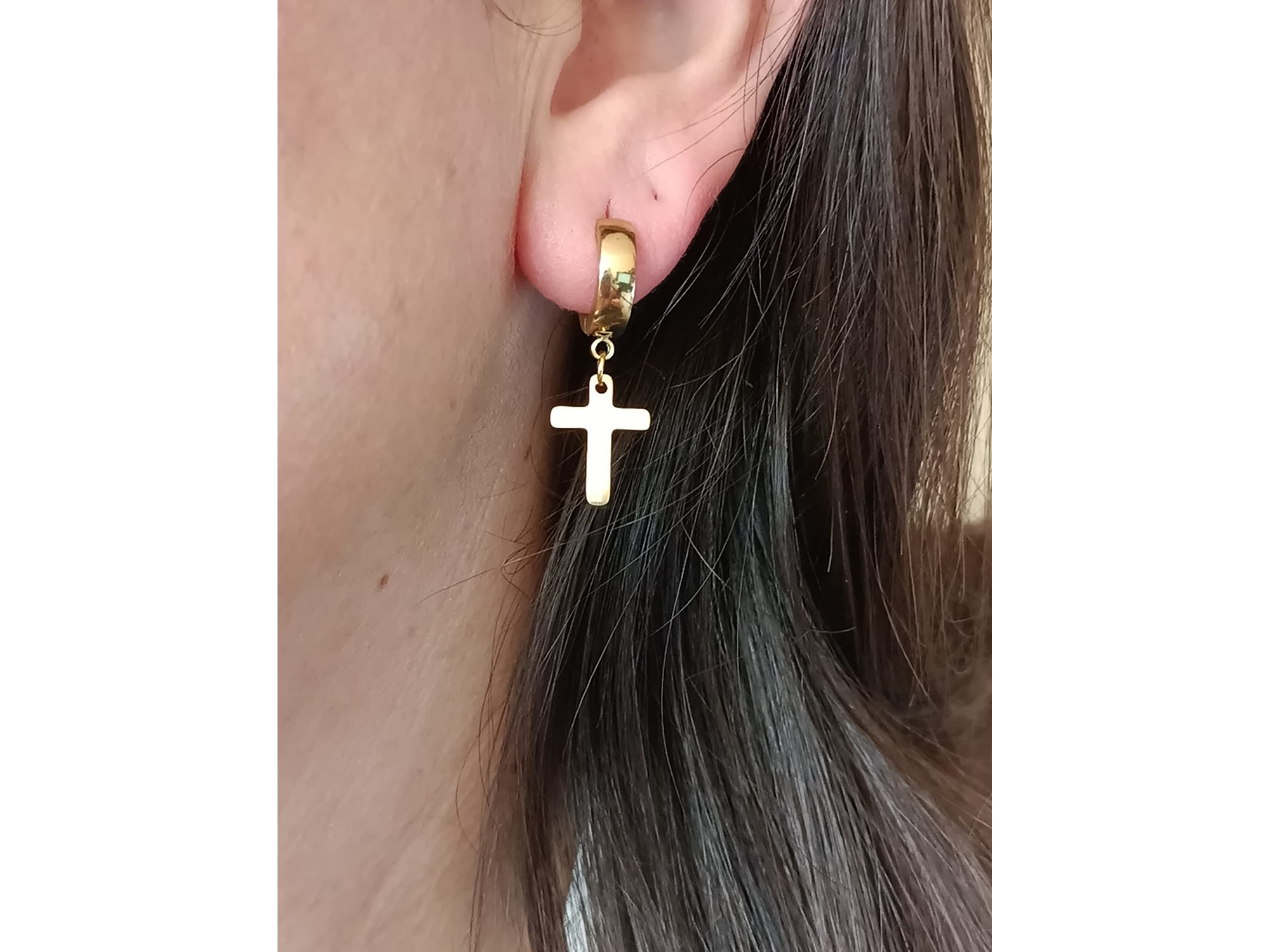 Aros Punk Largo Cruz Acero Negro Pendientes Hombre Mujer