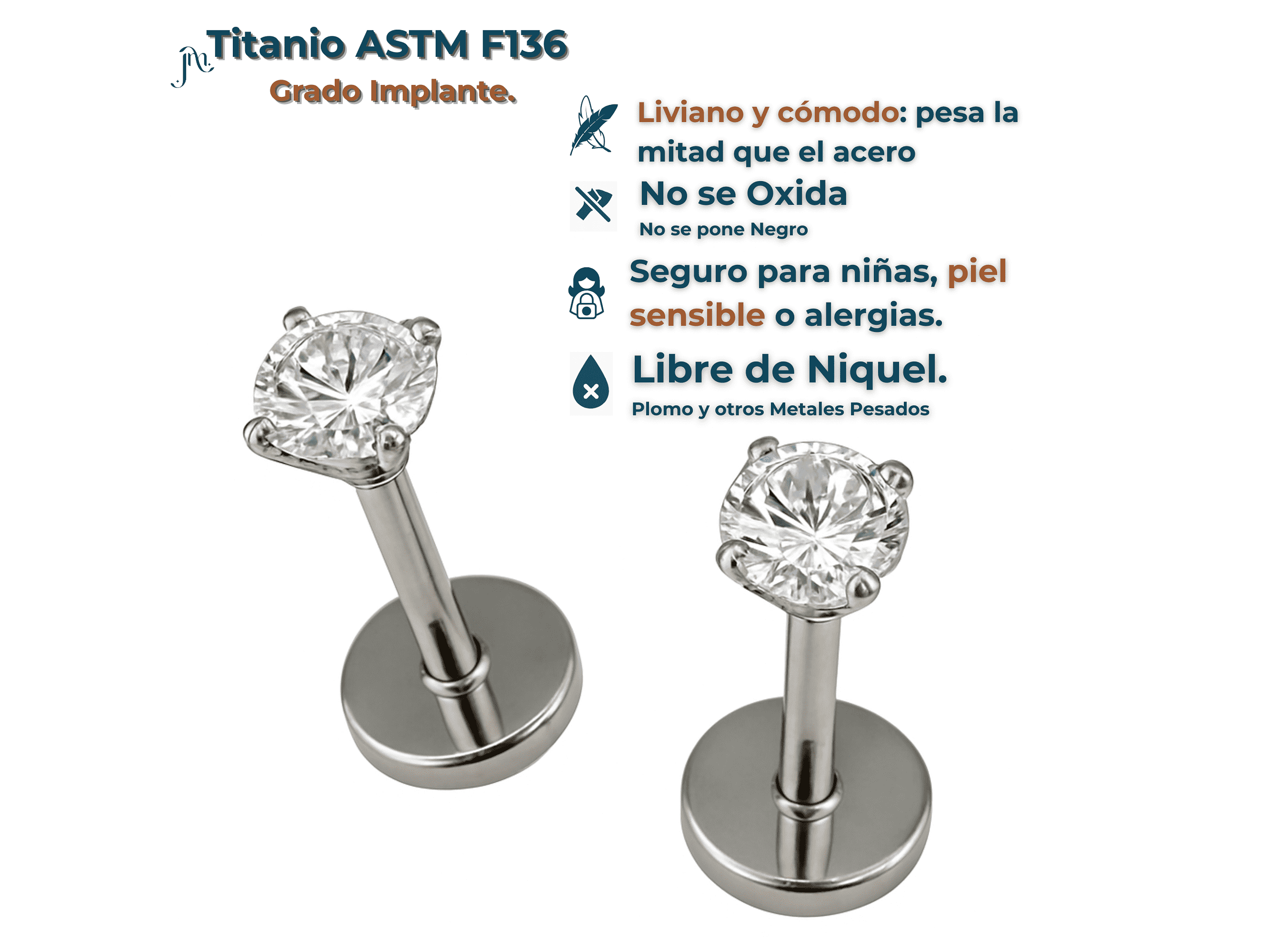 ¿Por qué una pieza de titanio para tu primera perforación? El titanio es el metal más compatible con el organismo humano (considerado como el metal más biocompatible que no es dañino ni tóxico para los tejidos del organismo), hasta el momento no se han reportado reacciones alérgicas del sistema de defensa del cuerpo. Esto significa que los tejidos de tu organismo tolerarán su presencia sin provocarte reacciones alérgicas; lo que conjunto a una buena higiene y los cuidados adecuados, te da la seguridad de que tu pieza podrá sanarse de la forma adecuada. Además de esto, cicatriza 3 veces más rápido que otros materiales gracias a su efecto espejo el cual es un tipo de acabado que se le da a la superficie de la joya.