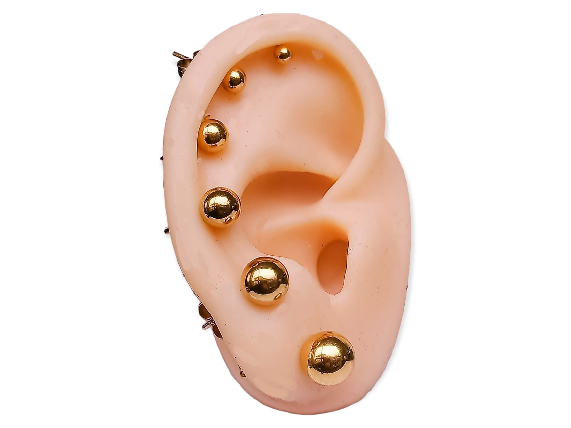 Bello pack ó set de aros esferas chapadas en oro 18k. El pack consta de 6 par de aritos de esfera cuyas dimensiones están entre 3mm y 8mm. Ideales para tus diseños de orejas. Su material hipoalergénico permite que puedan ser usados con toda la tranquilidad.
