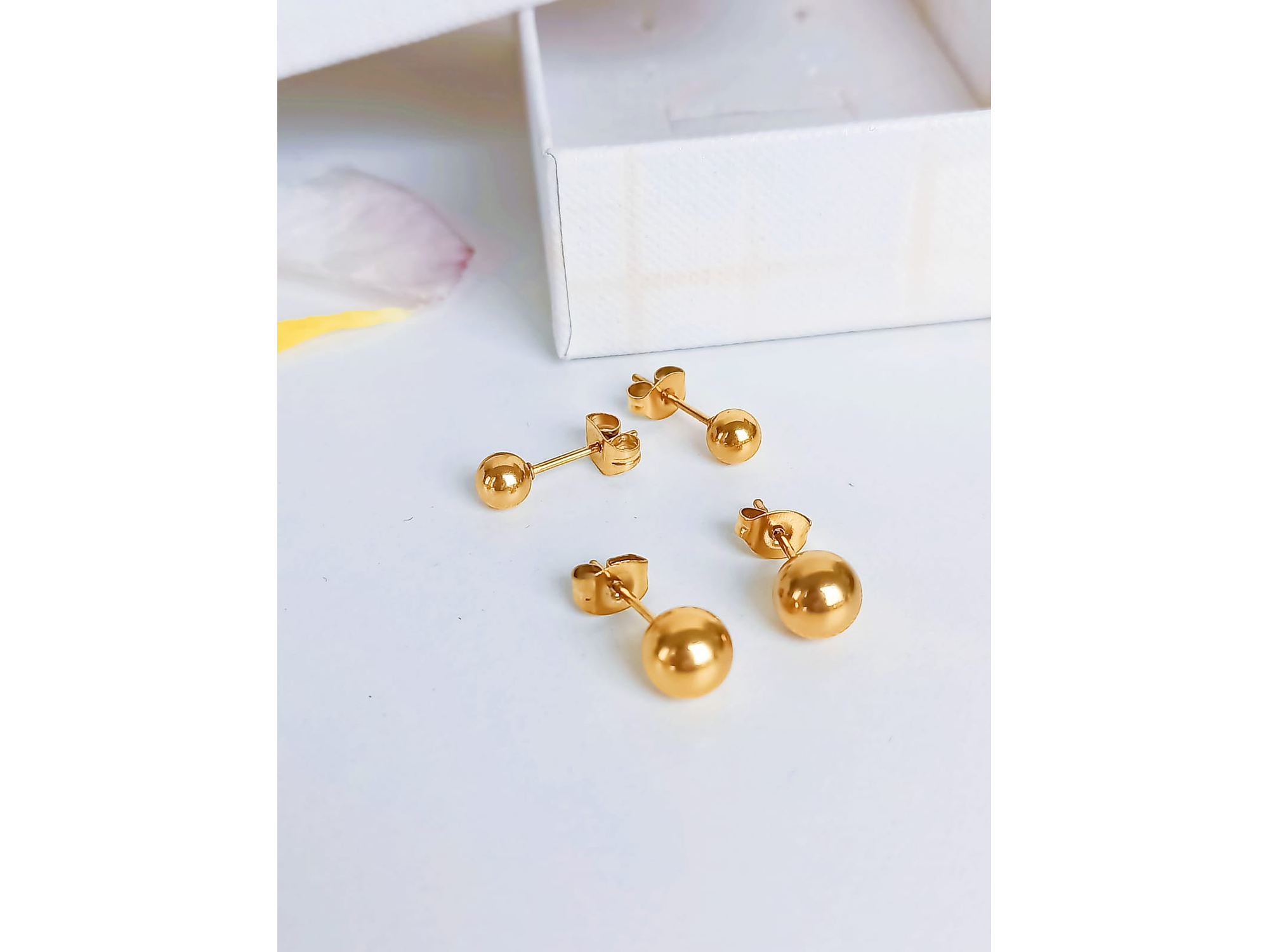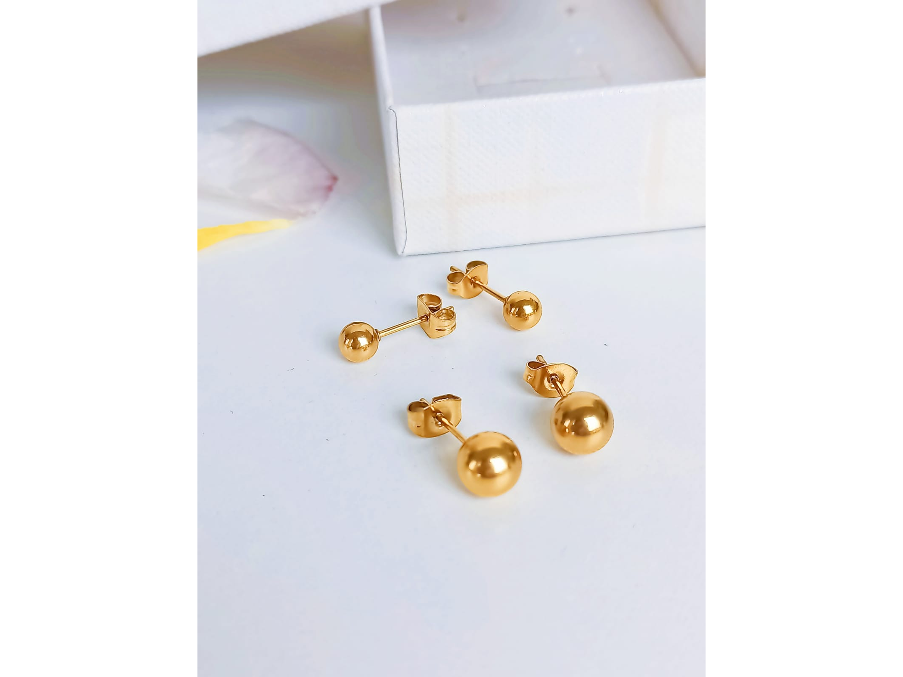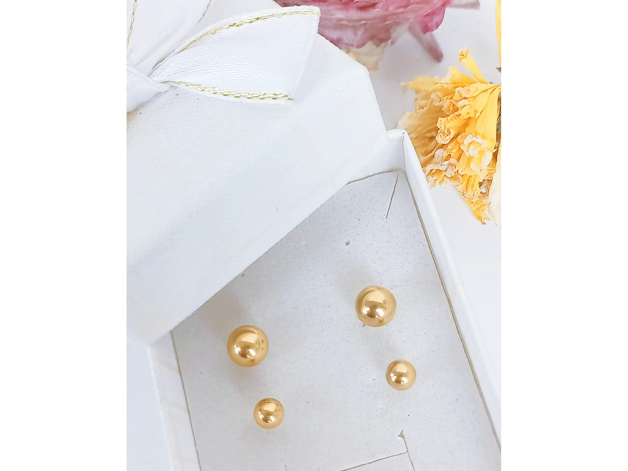 Bello pack ó set de aros esferas chapadas en oro 18k. El pack consta de 2 pares de aritos de esfera cuyas dimensiones son 5mm y 7mm. Ideales para tus diseños de orejas. Su material hipoalergénico permite que puedan ser usados con toda la tranquilidad.