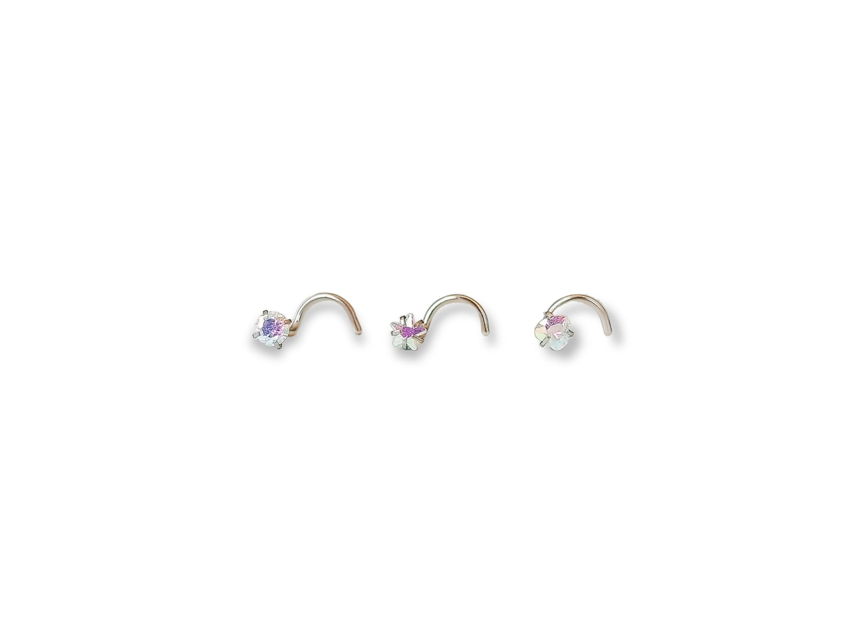 Pack Piercing Acero Nariz set Zirconia Tornasol tipo S