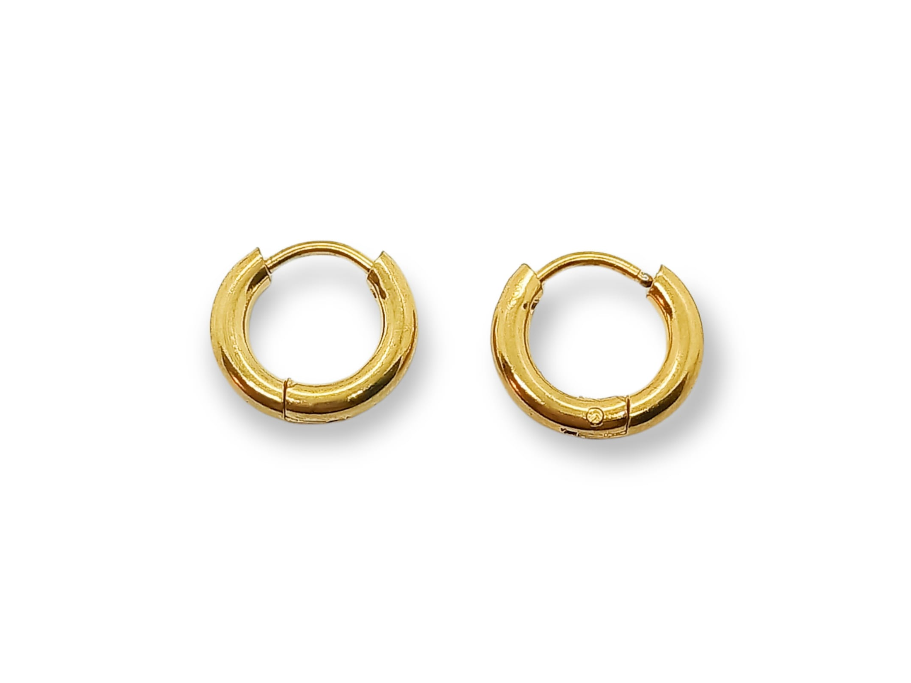 Argollas de tamaño ideal para combinar con otros pendientes, con un diámetro interno de 8mm y un diámetro externo de 12mm. Fabricado con un resistente chapado de oro de 18kl.