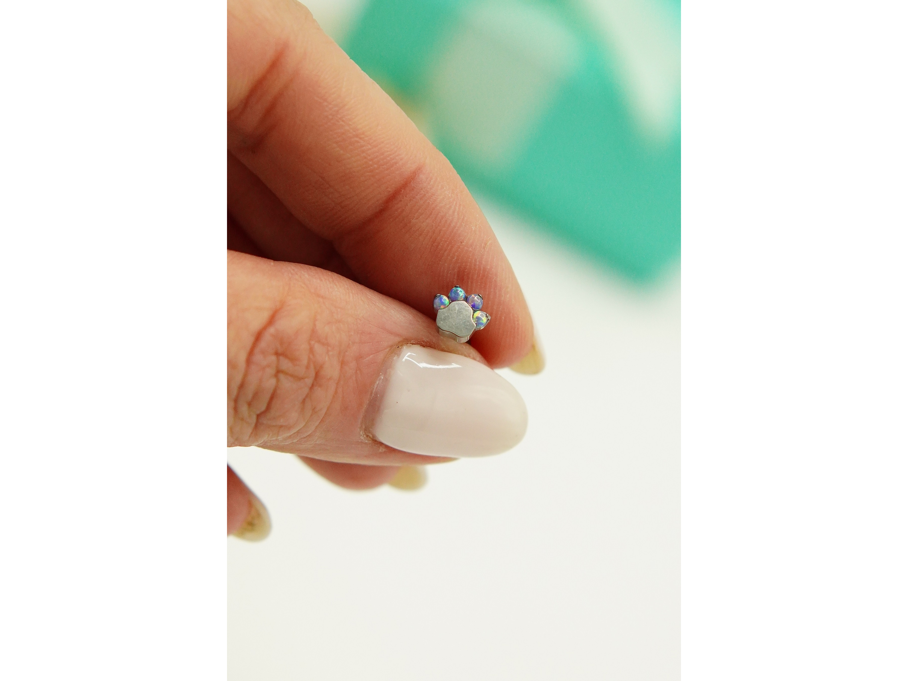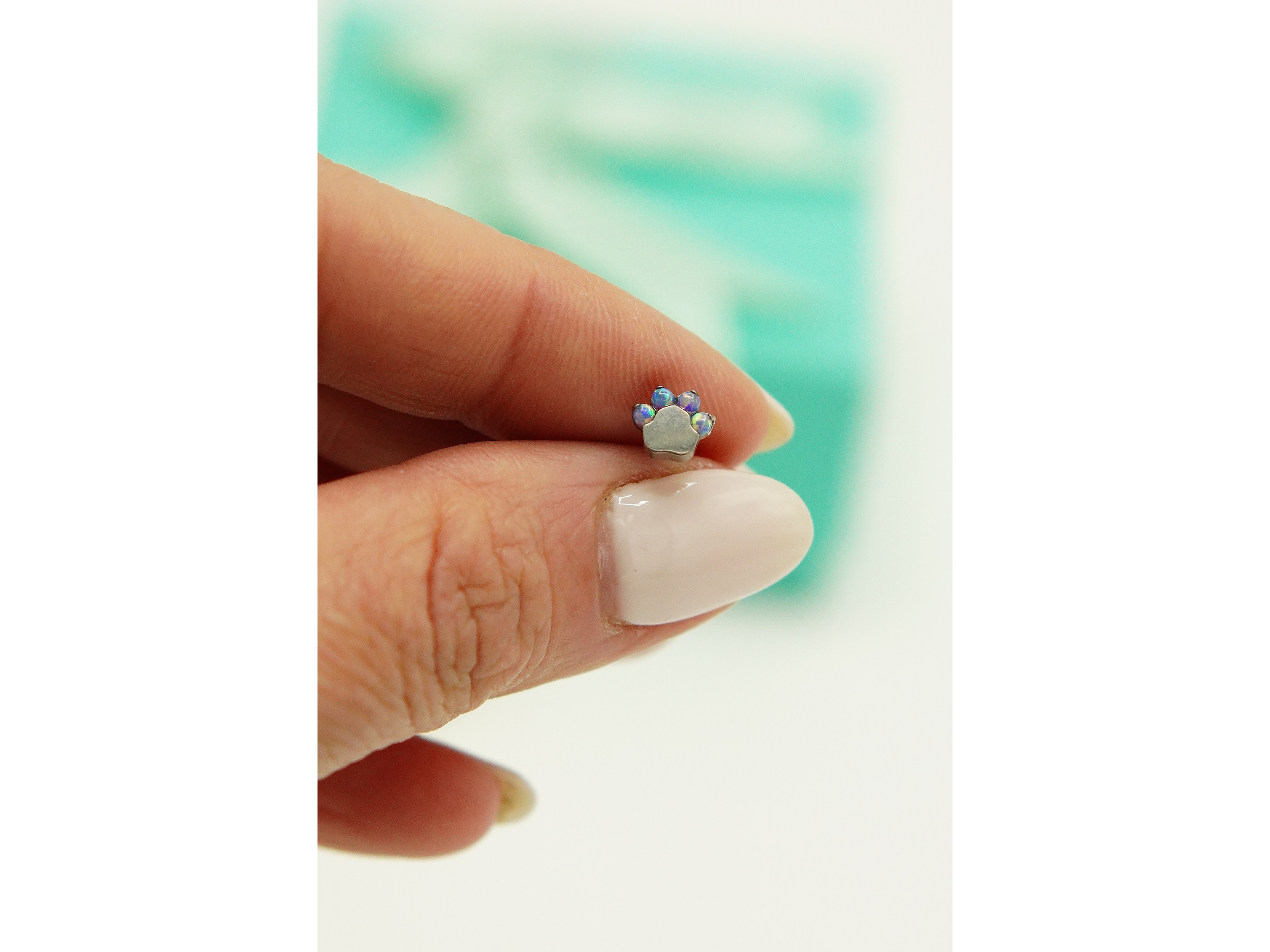 Piercing Labret 8mm Huella Perro Opalo Titanio Astm F136