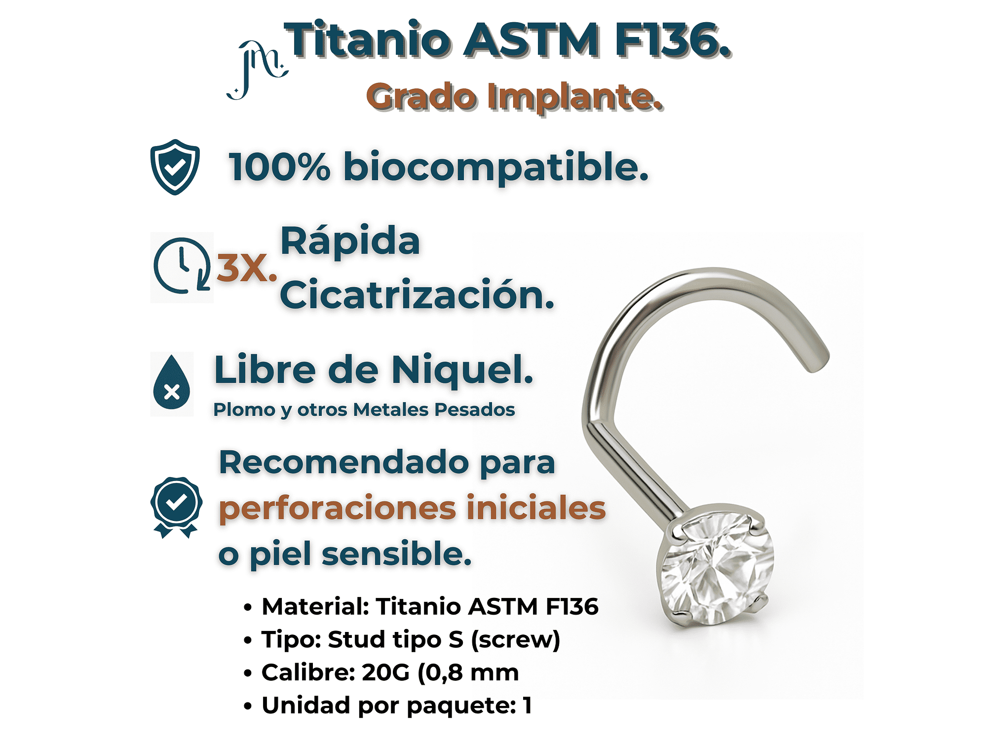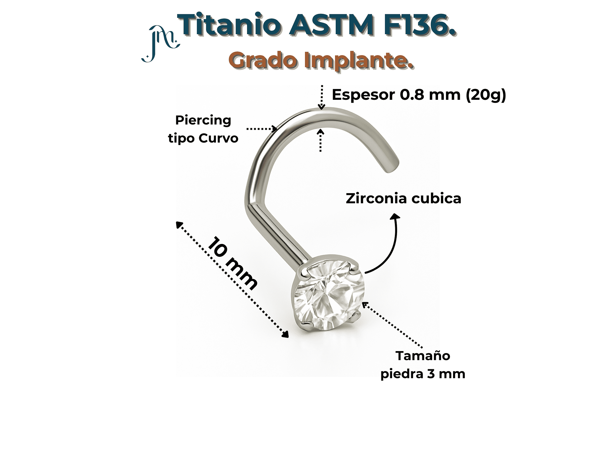 Piercing Nostril 3mm Tipo S Titanio Astm F136 20g Nariz