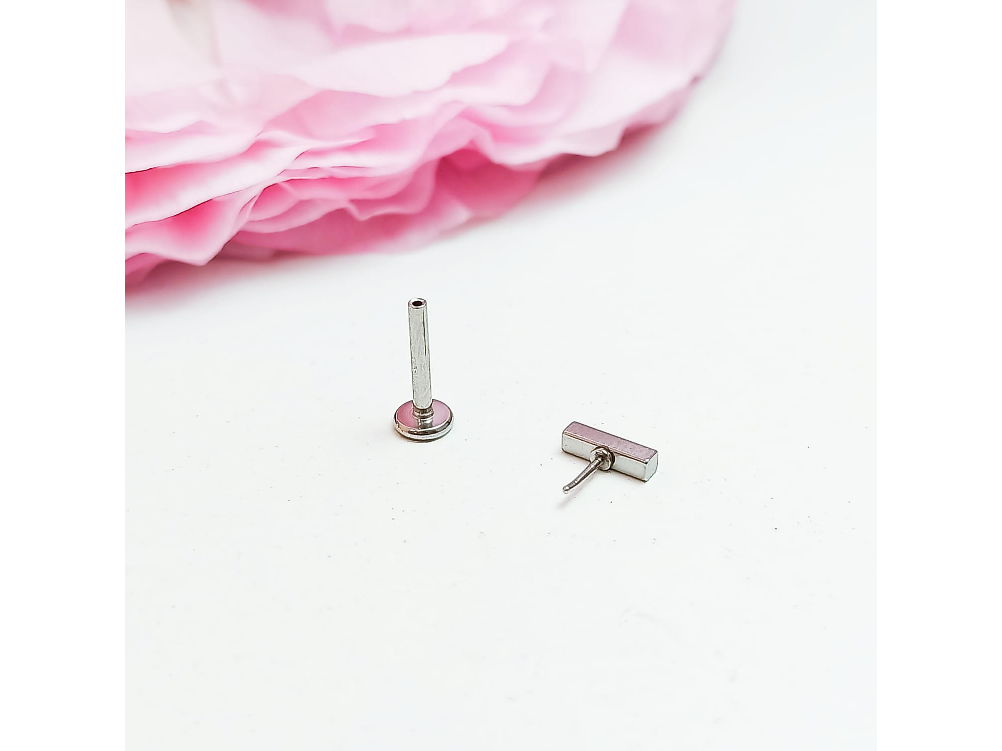Es importante que sepas que en el empaque vienen 3 piercings estilo labret a presión (Tal y como se observa en las fotografías), que pueden ser usados también como estilo, helix o nostril.